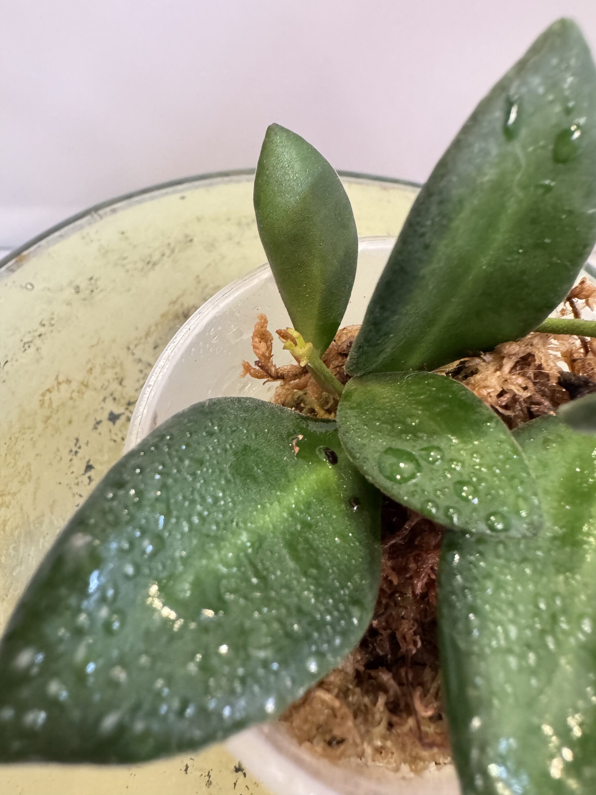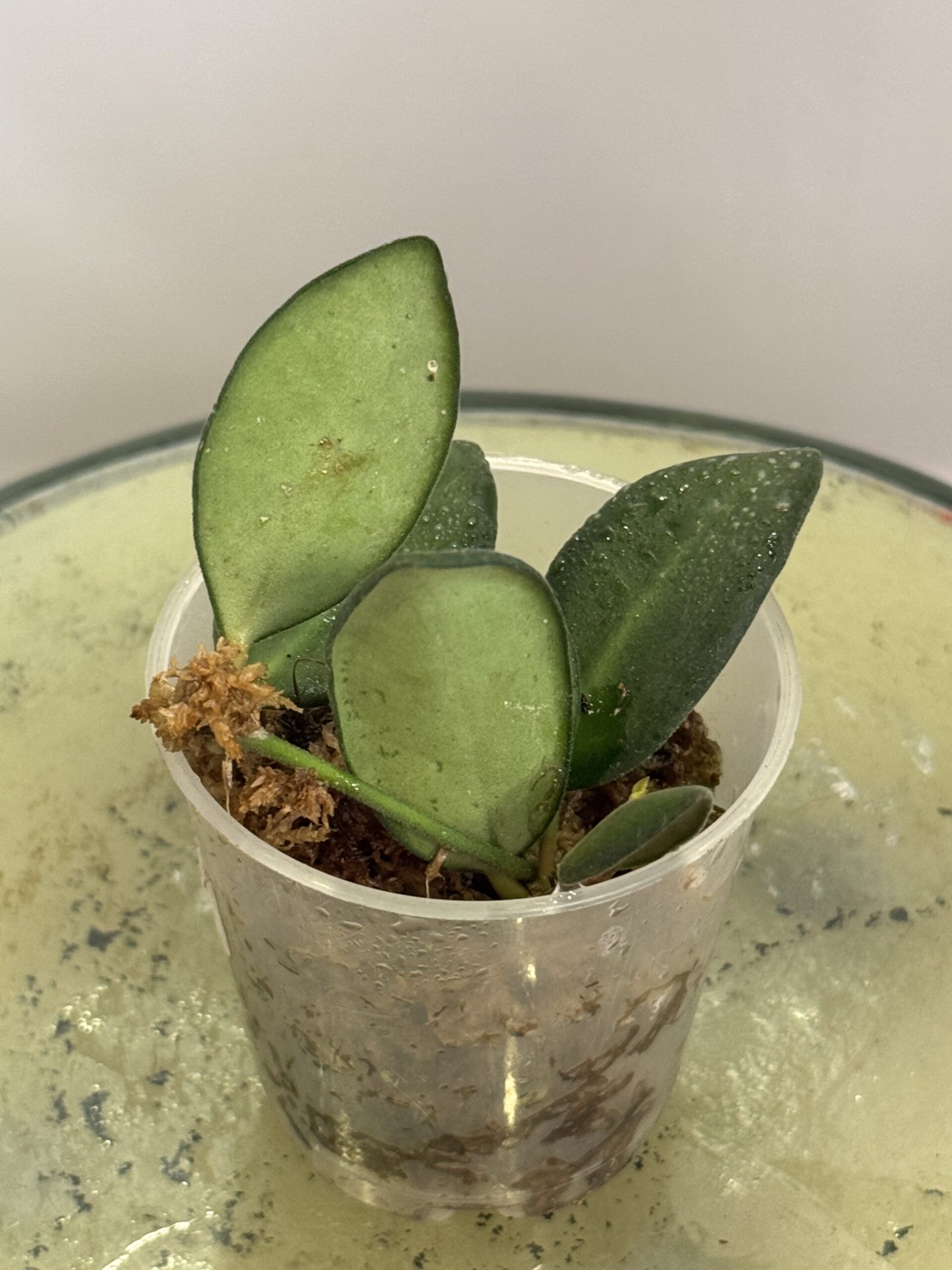 This hoya is rooted in a sphagnum moss and shipped in a 2″ pot.