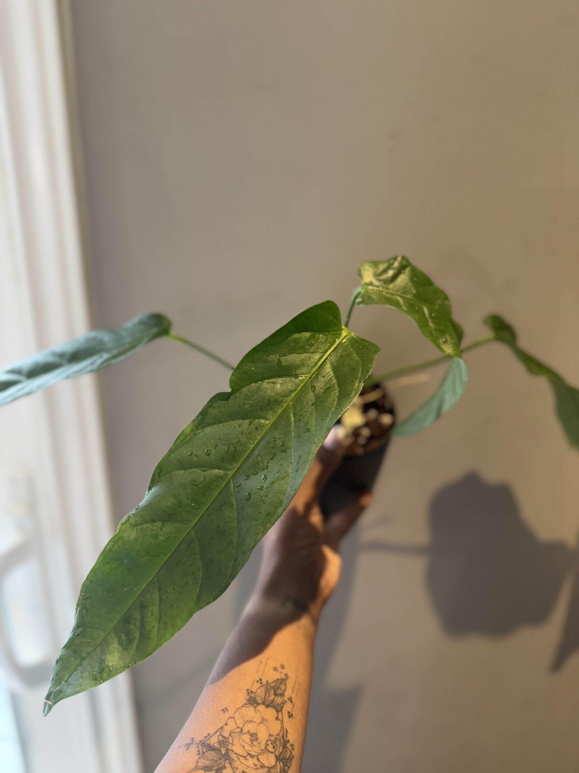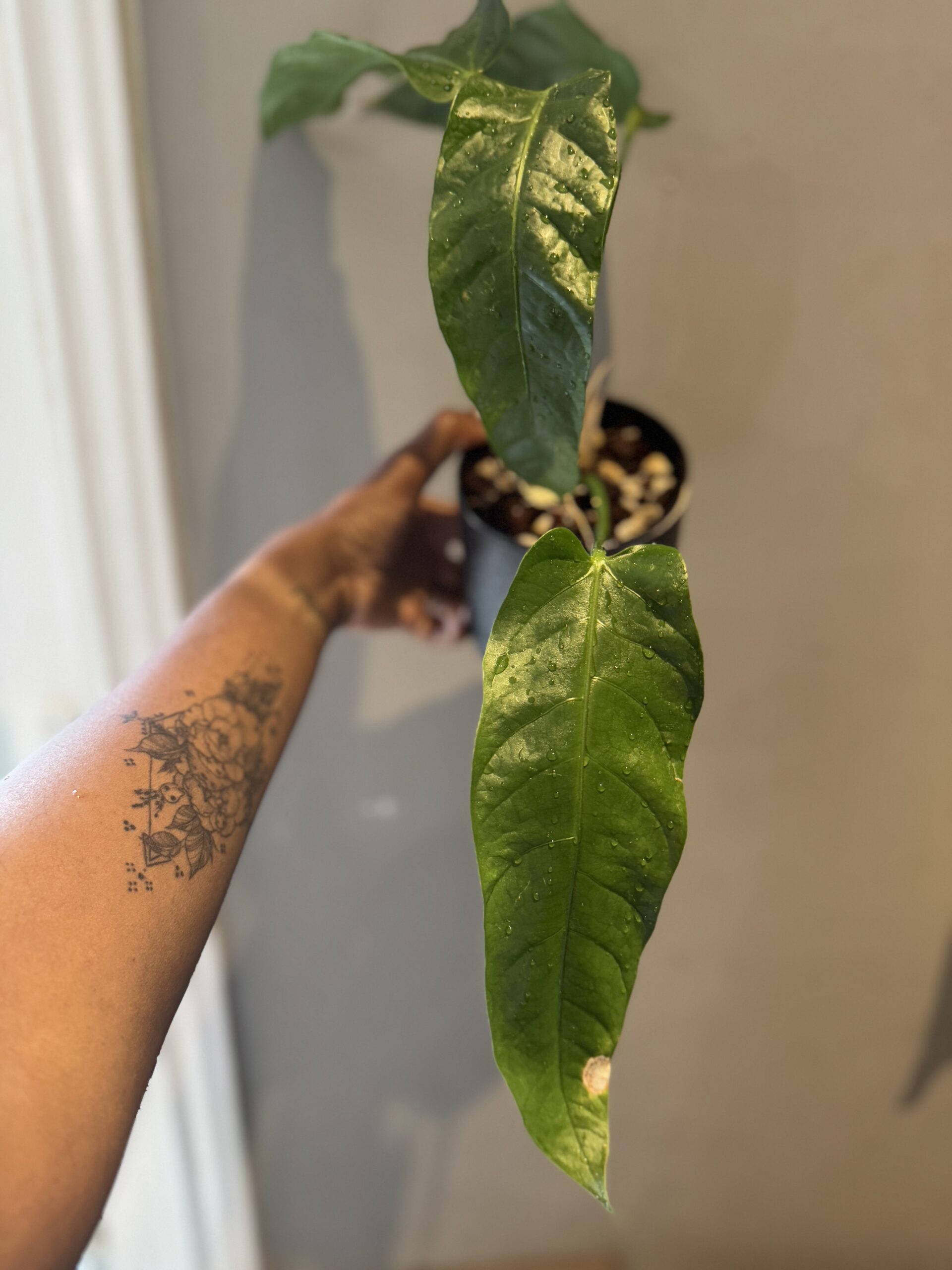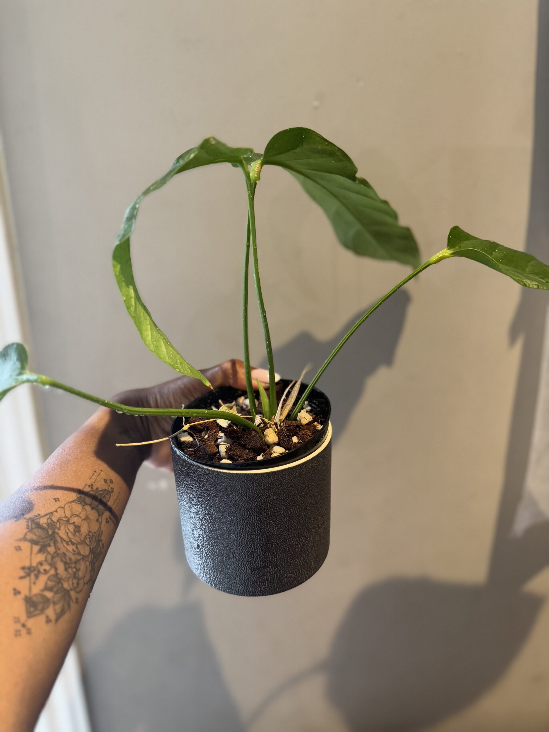 This plant is rooted in a chunky aroid mix and shipped in a 4″ pot. Note, ceramic pot not included.